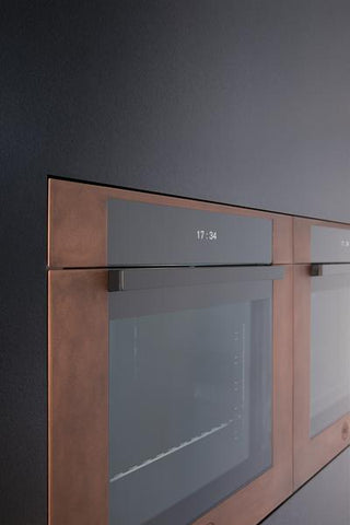 La cottura statica è perfetta per le torte, mentre quella ventilata assicura una distribuzione uniforme del calore su tutti i cinque livelli per arrostire e cuocere senza che i sapori si mescolino. Il grill a infrarossi garantisce rosolatura e grigliatura intensa su ampie superfici. L'ampio display TFT e i comandi full touch facilitano l'impostazione e il monitoraggio delle pietanze durante la cottura. Questo display consente, inoltre, una semplice gestione della sonda cibo e dell'Assistente Bertazzoni. La porta è dotata di apertura silenziosa, garanzia di sicurezza e praticità, e di un'elegante maniglia rifinita in vetro.