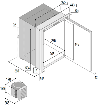 Il frigo-freezer C42LX OCX2 in acciaio inox della serie OCX2 si presenta come una soluzione ideale, grazie alla sua capacità totale di 42 litri, con la possibilità di avere un vano freezer da 3,6 litri se scelto tra le opzioni disponibili. È dotato di un'unità refrigerante esterna.