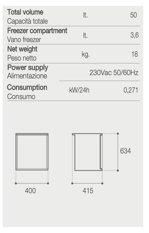 A questi consumi abbina un volume totale di 50 litri, di cui 3,6 adibiti a cella freezer per mantenere i prodotti congelati, e un peso di 18 Kg.