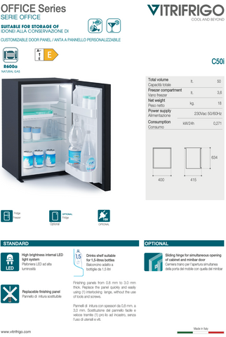 Ⓜ️🔵🔵🔵 Vitrifrigo C50I - Minibar a compressore, 50 litri, Vano freezer, Luce LED interna, Classe E