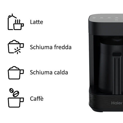 Ⓜ️🔵🔵🔵 Haier HMB5A 011 - [📦🚨Spedizione immediata!🚚💨] Multi Beverage (caffè, infusi, tè, montalatte, cioccolata, latte, orzo) I-Master Serie 5 Nero, Salvaspazio 3 in 1, 6 programmi automatici