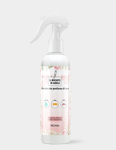 Ⓜ️🔵🔵🔵 IL BUCATO DI ADELE spray Peonia - Profuma tessuti spray, fragranza "PEONIA", 1 flacone da 250 ml con vaporizzatore, 🐾💕 NON TESTATO SU ANIMALI 🌱 100% VEGAN, 🇮🇹 MADE IN ITALY