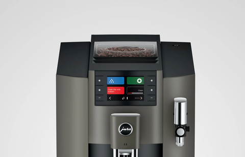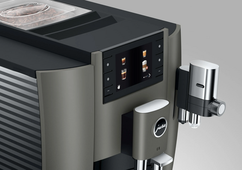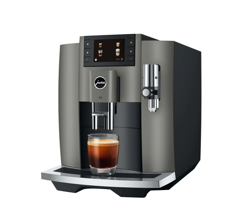 Ⓜ️🔵🔵🔵 JURA E8 Dark Inox - Macchina da caffè espresso COMPLETAMENTE AUTOMATICA (dai chicchi al caffè), colore DARK INOX, 2 tazze, bevande con latte, 17 tipi di bevande, FACILISSIMA DA USARE E DA PULIRE