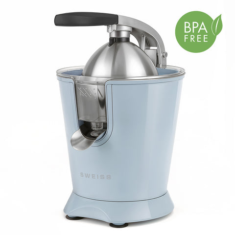 Ⓜ️🔵🔵🔵 SWEISS ZEST6 - Spremiagrumi elettrico di altissima qualità, SENZA BPA GARANTITO, corpo in acciaio inox, rivestimento AZZURRO RETRÒ, lavabile in LAVASTOVIGLIE, con BRACCIO IN ACCIAIO INOX ROBUSTISSIMO