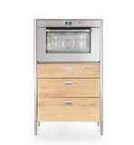 Colonna cucina in acciaio inox con cassetti in legno di rovere naturale larga 98cm, profonda 64cm, alta 165/170cm