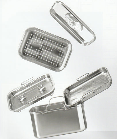 La pentola ha triplo fondo ed è completa di due vassoi forati di diversa capienza intercambiabili e coperchio con filtro assorbi-odori.