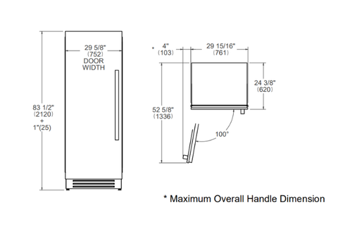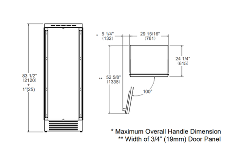Le cerniere brevettate "lift and swing" consentono l'installazione perfettamente a filo con uno spazio libero minimo dai pannelli dei mobili adiacenti. Ciò consente di creare configurazioni eleganti con frigorifero, freezer e cantina vini in qualsiasi larghezza desiderata.