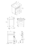 Questa cucina da 80x50 cm, con forno singolo, è dotata di un piano di lavoro in acciaio inossidabile, stampato in un pezzo unico, con 5 fuochi, tra cui un bruciatore a tripla corona, ad alta resa, che permette un controllo preciso della fiamma, dalla cottura simmer, a fuoco minimo, alla cottura a fuoco vivo. Il piano di lavoro è dotato di alzatina. Il forno, a gas, possiede un grill elettrico ed è dotato di ventola. La cucina è dotata di un timer contaminuti.