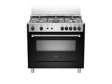 Questa cucina, con forno singolo, è dotata di un piano di lavoro in acciaio inossidabile, stampato in un pezzo unico, con 5 fuochi, tra cui un bruciatore a doppia corona, ad alta resa, che permette un controllo preciso della fiamma, dalla cottura simmer, a fuoco minimo, alla cottura a fuoco vivo.