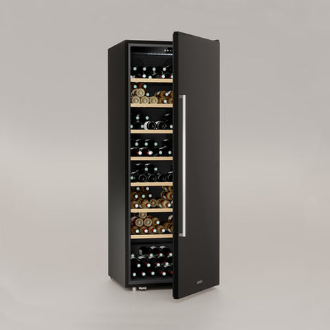 Le linee ben definite le conferiscono un aspetto moderno ed elegante. All'interno è dotata di 6 ripiani che permettono di impilare - una sopra - l'altra fino a 224 bottiglie di vino standard.