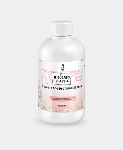 Ⓜ️🔵🔵🔵 IL BUCATO DI ADELE peonia - Profumatore concentrato per bucato in lavatrice, fragranza "PEONIA", 1 flacone da 500 ml, 🐾💕 NON TESTATO SU ANIMALI 🌱 100% VEGAN, 🇮🇹 MADE IN ITALY