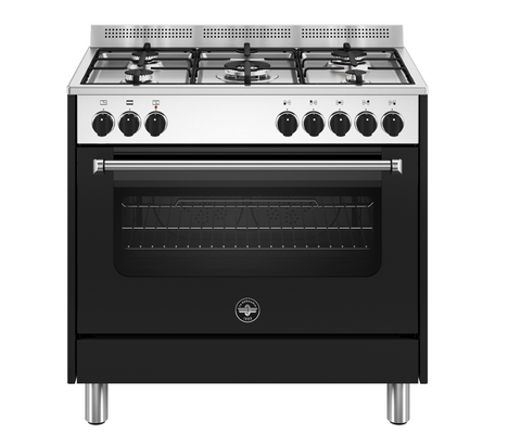 Ⓜ️🔵🔵🔵 LA GERMANIA AMN965ENEV/24 - Cucina 5 fuochi gas, forno elettrico, 90x60 cm, nero opaco, Serie Americana, Classe A