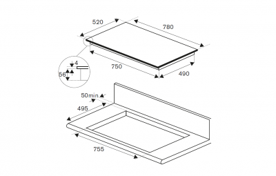Questo piano cottura, da 78 cm, è dotato di 4 zone a induzione, di cui una funzione multizona. Le aree ad induzione hanno comandi touch, ciascuno con potenza da minima a massima e un sistema per il rilevamento della pentola. I segnali di calore residuo avvertono se il piano cottura è caldo, anche quando l'area è spenta. La potenza nominale del piano è autolimitata ad un valore minimo di 1,5 kW. Il piano di lavoro a induzione, resistente all'usura, e tutto vetro, che lo rende molto facile da pulire.