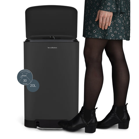 Ⓜ️🔵🔵🔵 Les Collectors N°531 - Pattumiera a pedale, corpo in ACCIAIO INOX e finitura GRIGIO SCURO OPACO, 20 litri, CHIUSURA SILENZIOSA del coperchio