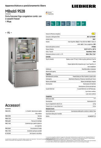 Ⓜ️🔵🔵🔵 LIEBHERR MBsddi 9528 Plus BioFresh NoFrost - Frigorifero ad armadio FrenchDoor con 2 cassetti congelatore, distributore di acqua e cubetti di ghiaccio, GARANZIA 10 ANNI INCLUSA* originale LIEBHERR, Acciaio Inox, 91 x 181 cm, Nuova classe D