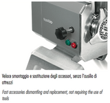 Tre Spade TOOLLIO mincer + grater - Robot da cucina multifunzione PROFESSIONALE, kit tritacarne e grattugia, finitura rossa, motore a induzione monofase 220V/50Hz, PRODOTTO IN ITALIA