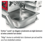 - Struttura “a ponte” per inserire agevolmente teglie Gastronorm sotto la macchina