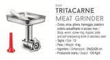 La dotazione standard del tritacarne comprende un imbuto utilizzabile sia per l’insaccaggio sia per l’estrazione di succo di pomodori pelati.