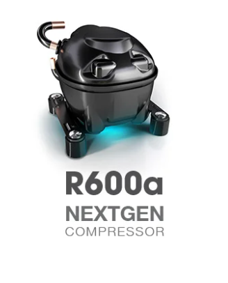 Grazie al compressore NextGen R600a, questo modello è più leggero di 3 kg rispetto ai modelli tradizionali, è silenzioso e a basse vibrazioni e garantisce prestazioni elevate e consumi energetici ottimizzati.